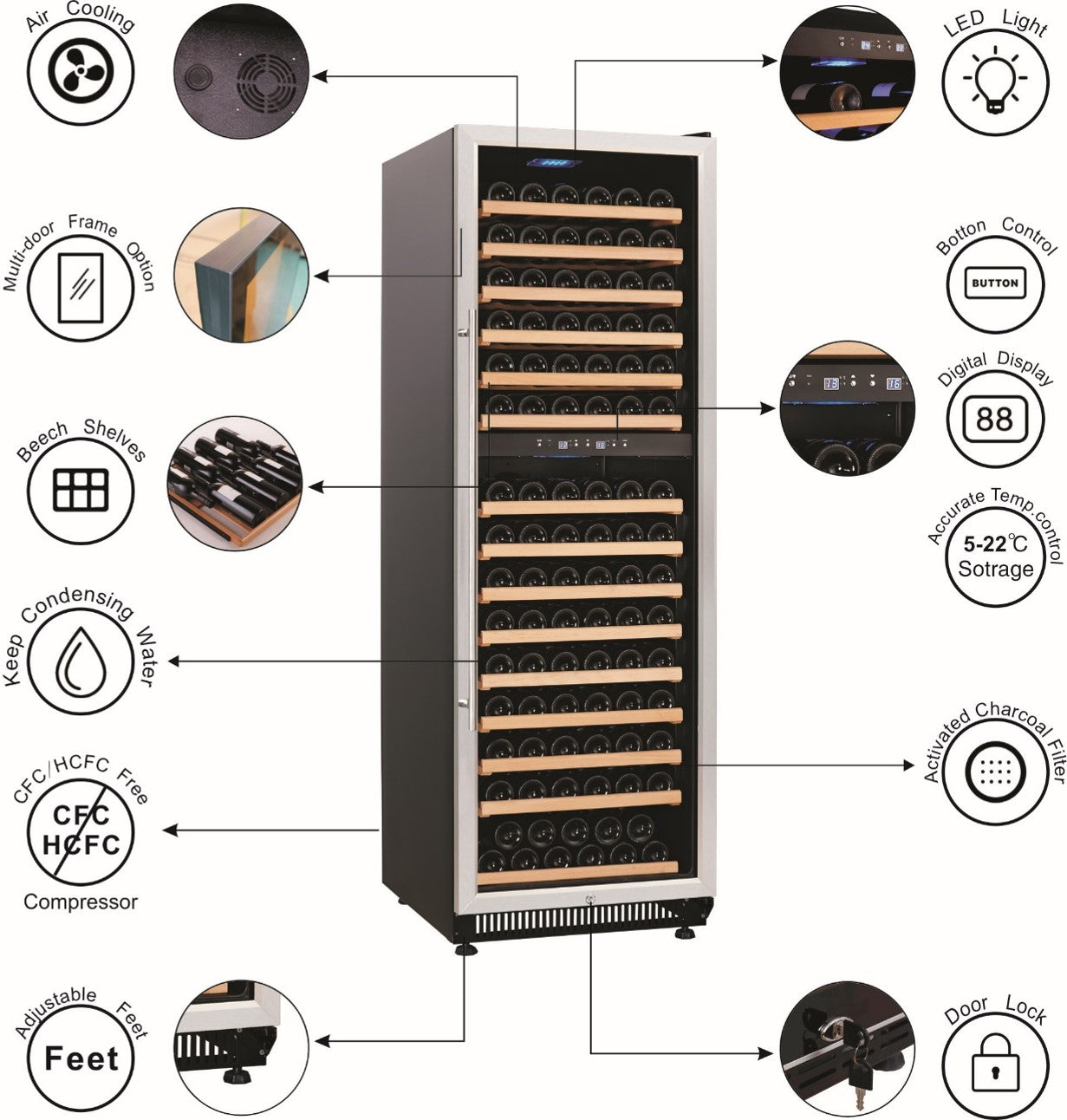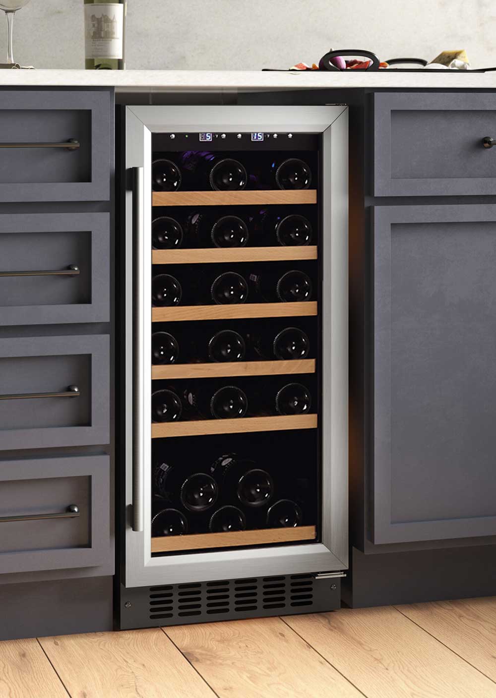Wine Chiller 30 Bottle 6 Tier Wood Shelves with Side Handler