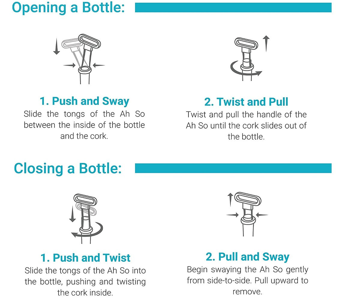 - PURE STAINLESS STEEL - Any wine or champagne drinker will tell you it is important to have a good, reliable cork remover! Our ‘AH-SO’ wine opener is made with stainless steel for high-end durability while maintaining a sleek look.